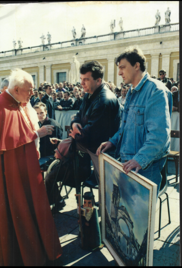 Susret sa svetim ocem Ivici je ostala vječna uspomena na jedno putovanje i odlazak sa Udrugom u Vatikan koje je tada organizirala pokojna časna sestra Josipa Kordić, gdje je dobio blagoslov od svetog oca Ivana Pavla ll, a za uzvrat su svetom ocu poklonili umjetničku sliku, ulje na platnu s motivima zapaljene stare Franjevačke crkve svetog Petra i Pavla u Mostaru.